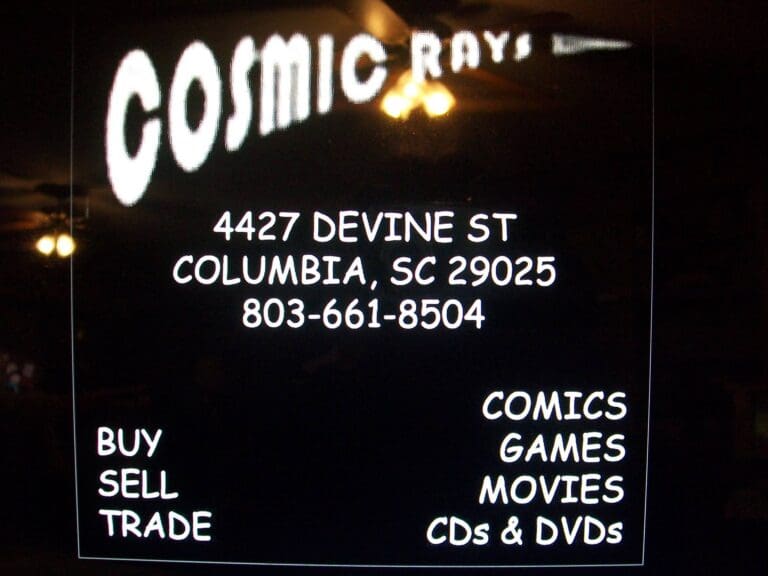 Cosmic Rays is Columbia’s go-to independent comic shop, centrally located on Devine Street. The store offers weekly new-title floppies with a pull-list service, vast back-issue archives, import comics, graphic novels, magazines, and a wide selection of toys, models, figures, RPGs, video games, and movies. They also carry all essential collecting supplies and host regular community events like Free Comic Book Day and monthly mock auctions. With an online catalog and eBay presence, it provides a full-spectrum experience for collectors and fans in the Midlands.